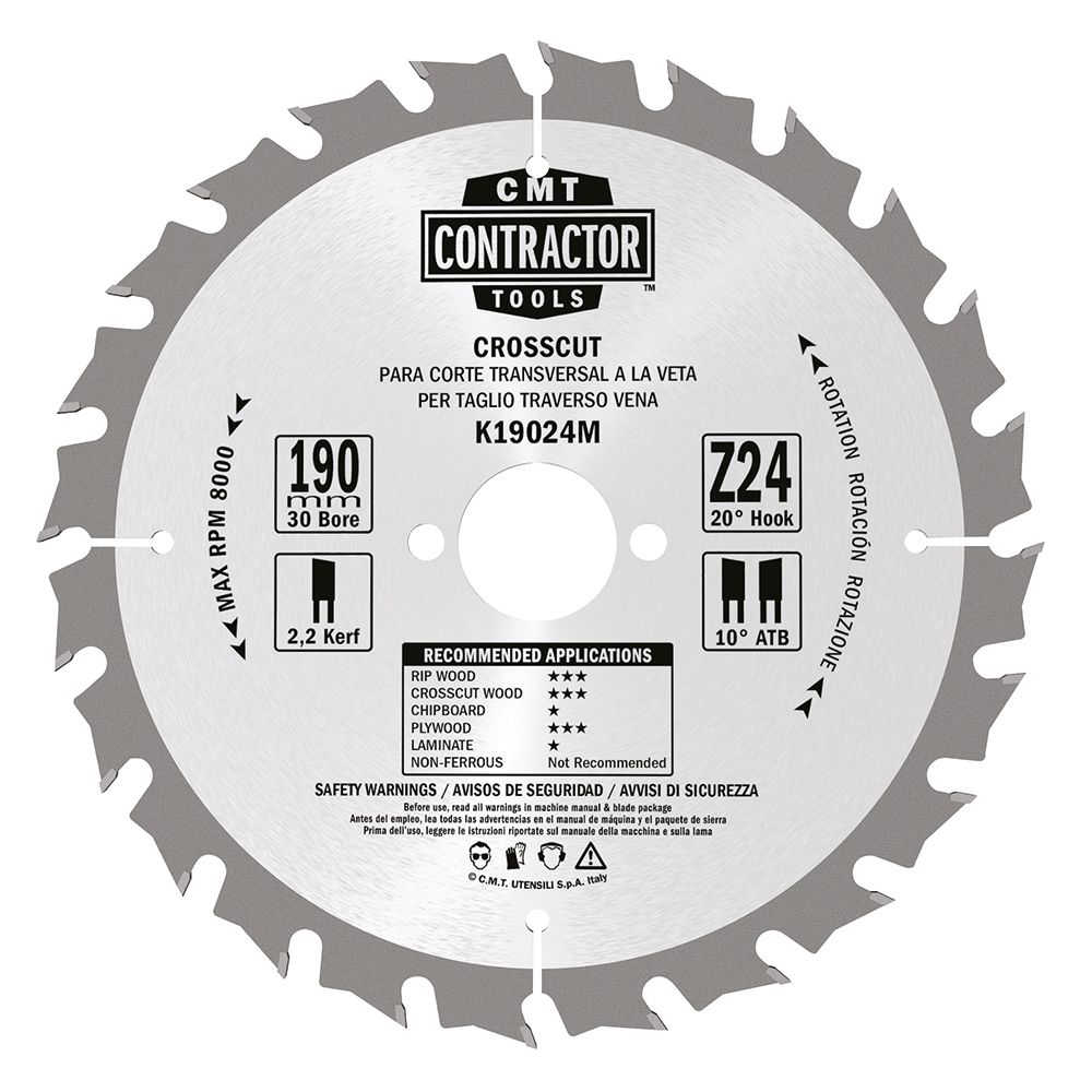 CMT K Contractor General Purpose Saw Blade - 190mm dia x 2.2 kerf x 30 bore Z24 10°ATB