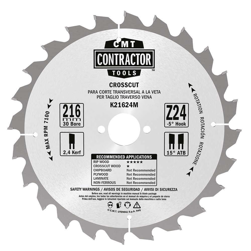 CMT K Contractor General Purpose Saw Blade - 216mm dia x 2.4 kerf x 30 bore Z24 15°ATB