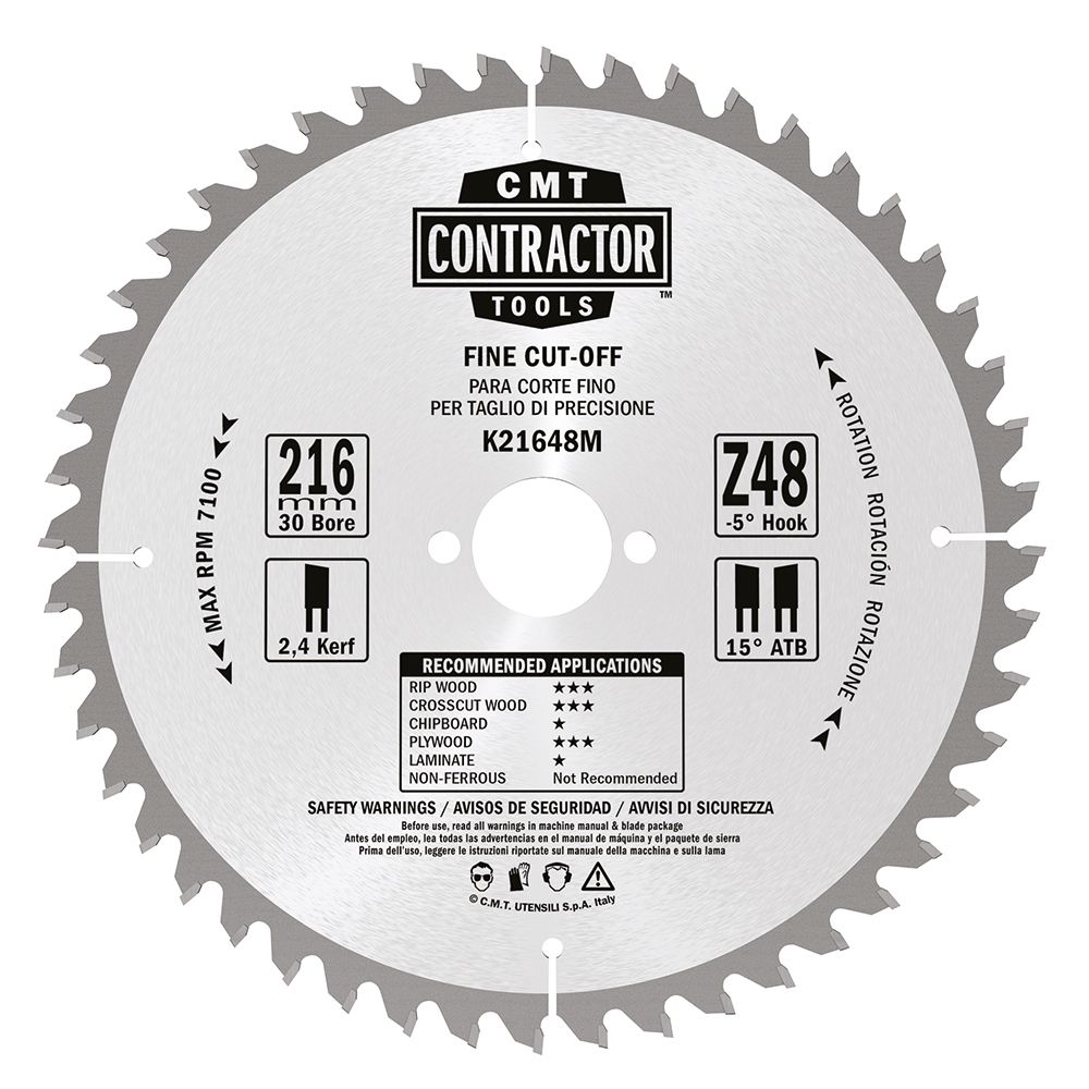 CMT K Contractor General Purpose Saw Blade - 216mm dia x 2.4 kerf x 30 bore Z48 15°ATB
