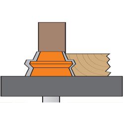 - Height adjustment is not critical with this matched pair; simply adjust your fence so the top edge of the work piece intersects the angle of the bit where it meets the fence.