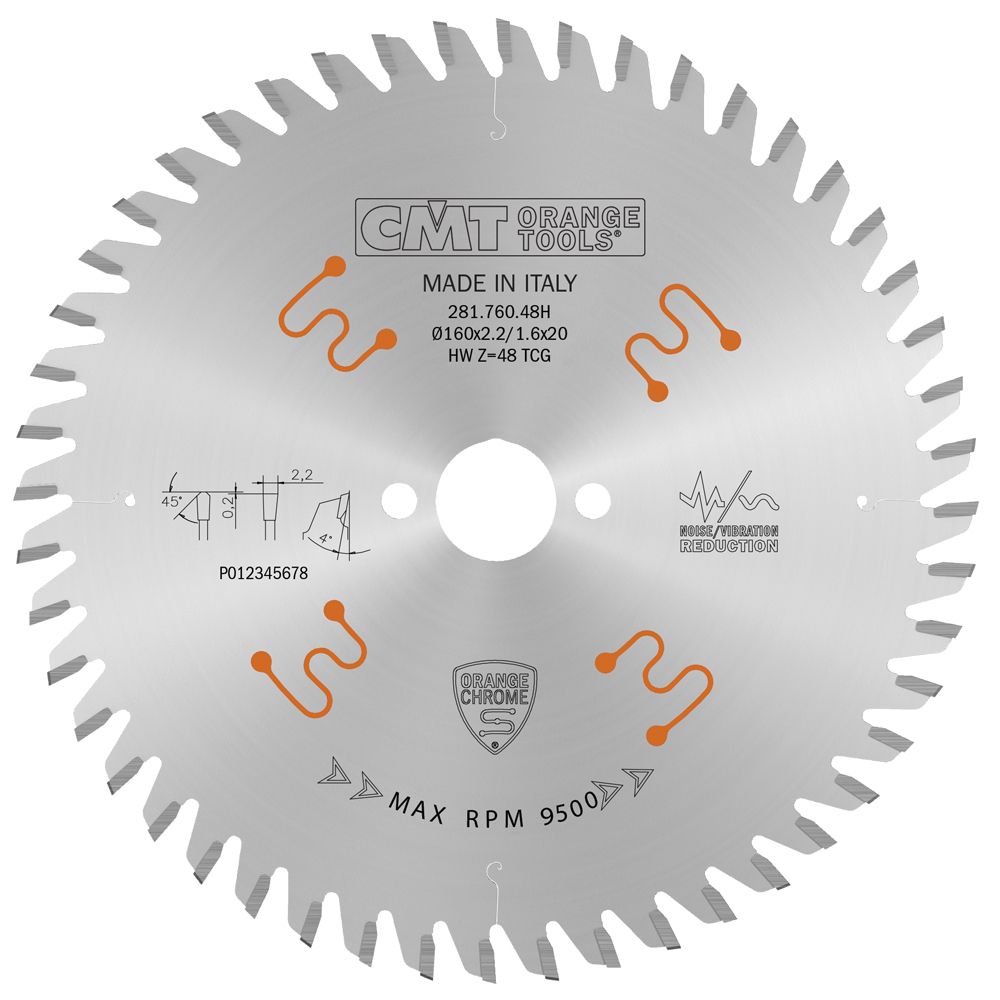CMT Low Noise Laminated and Chipboard Saw Blade 160mm dia x 2.2 kerf x 20 bore Z48 TCG