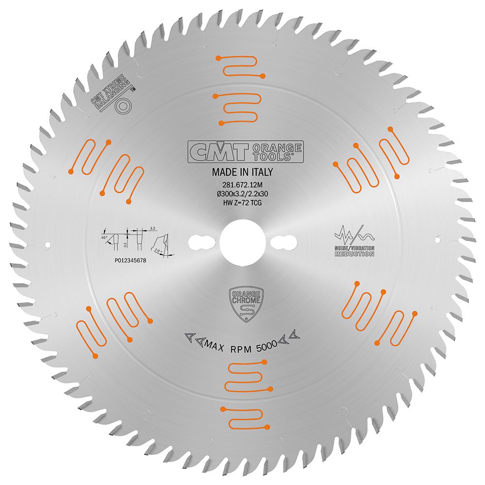 CMT Low Noise Laminated and Chipboard Saw Blade 300mm dia x 3.2 kerf x 30 bore Z72 TCG