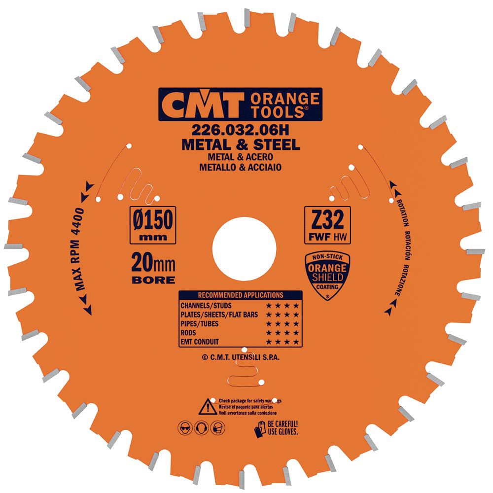 CMT Medium / Thick Metal and Steel Saw Blade 150mm dia x 1.6 kerf x 20 bore Z32 8°FWF