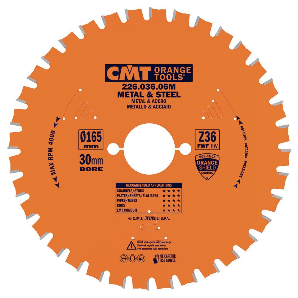 CMT Medium / Thick Metal and Steel Saw Blade 165mm dia x 1.6 kerf x 30 bore Z36 8°FWF