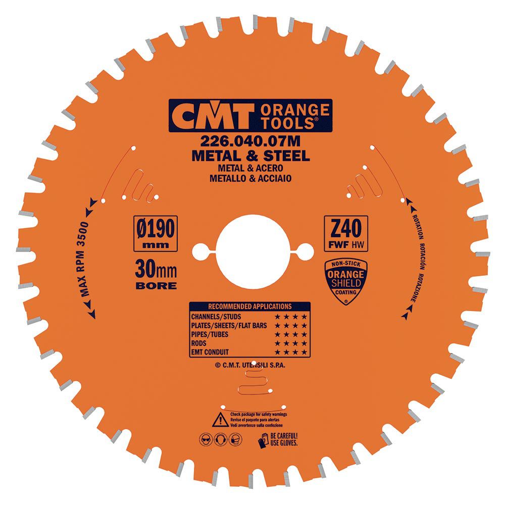 CMT Medium / Thick Metal and Steel Saw Blade 190mm dia x 2 kerf x 30 bore Z40 8°FWF