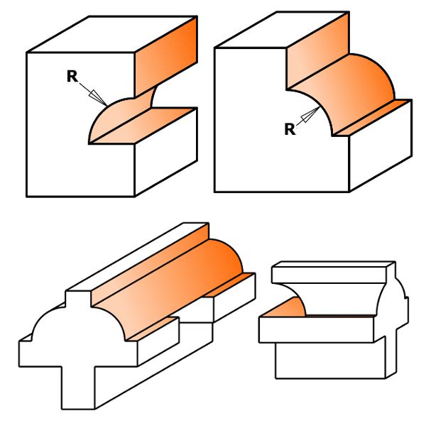 - Cove bits can be used to produce easy-to-pull drawer handles.