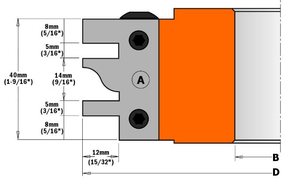 CMT PAIR OF KNIVES FOR ONE-PIECE RAIL & STILE 40X25X2 (A) FOR HEADS 694.014