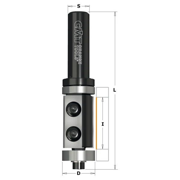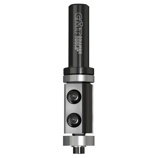 Flush trim bit combined with pattern bits fixed by special Torx screws. The blades are two-sided sharpened and can give extra new edges. 657 guided flush trim bits are equipped with top and bottom ball bearing guides. For flush and finish operations..