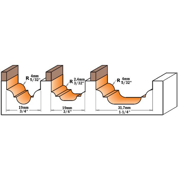 CMT Plunge Ogee Router Cutter Bits with Top Bearing - 848