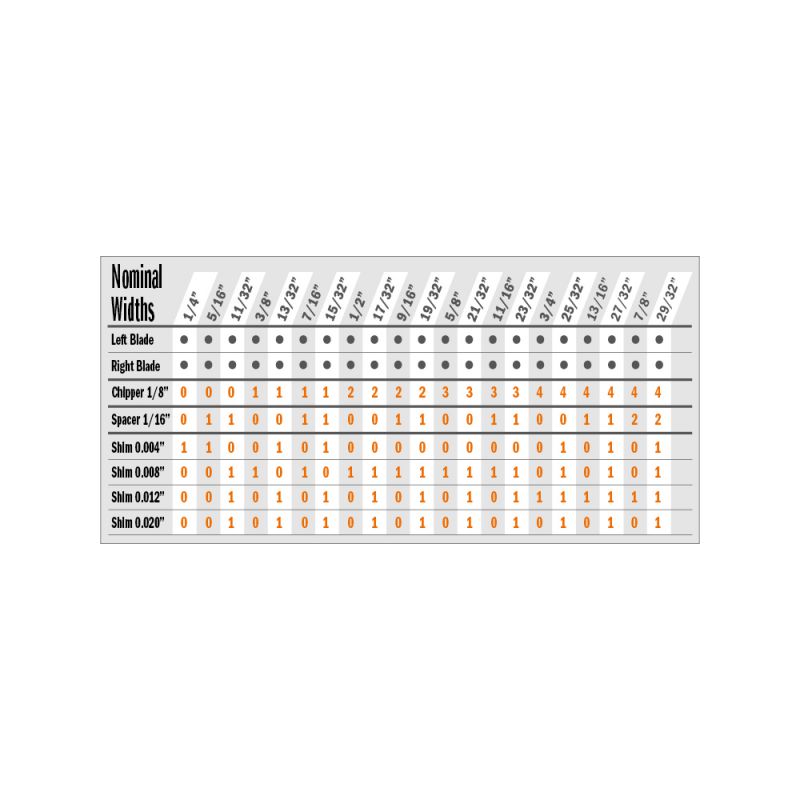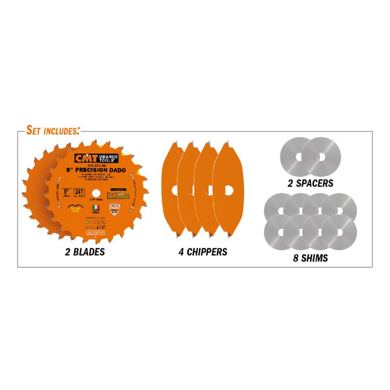 - WARNING: Always use both outside blades. Never use the chippers by themselves, or with only one outside blade. Securely fasten CMT dado on machine using manufacturers recommended dado arbor nut.