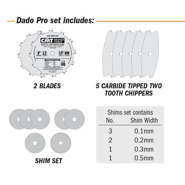 - CMT thoroughly researched the shortcomings of “standard” dado sets in order to understand what cabinetmakers required most from an “ideal” dado. The result was the Dado Pro Set, designed with the following features: