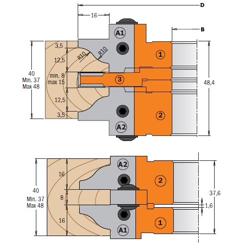CMT Profile and Counter Profile Cutter Head Set 132mm dia, 30mm bore