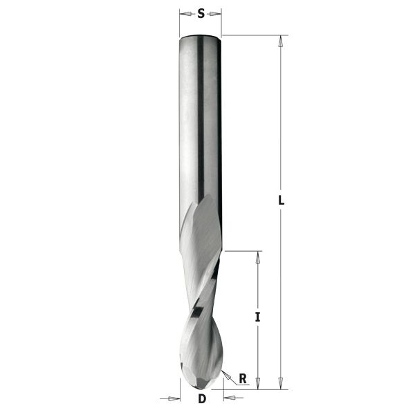 CMT Round nose solid carbide upcut spiral bit - 12.7 dia x 31.75mm cut x 1/2 shank