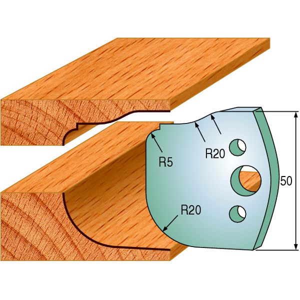 - Universal profile knives for use on CMT and other standard Euro spindle moulder blocks that accept 50mm knives