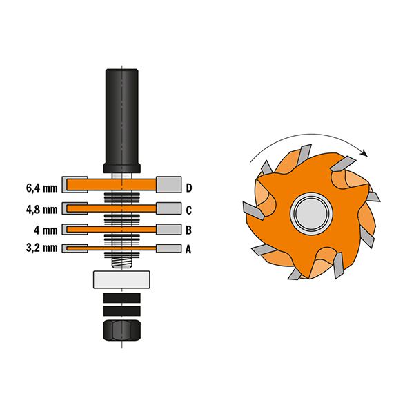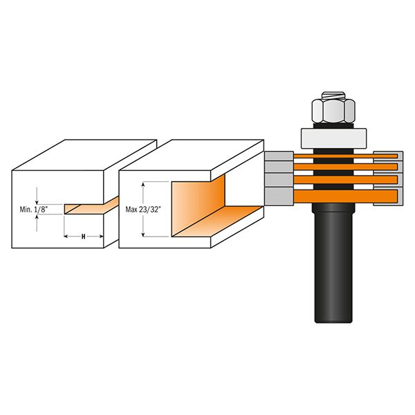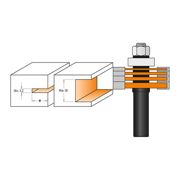 - Create slots, grooves and rabets in materials from 3.2mm to 18mm in depth by using the adjustable CMT Three Win Slot Cutter Set.