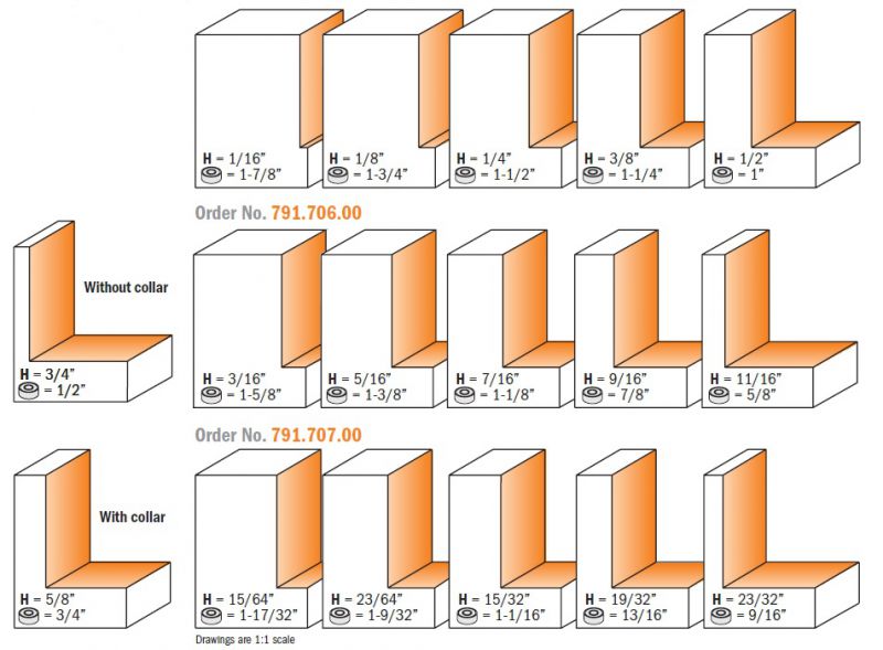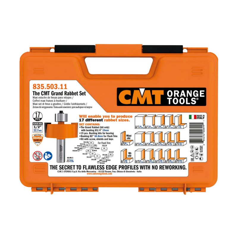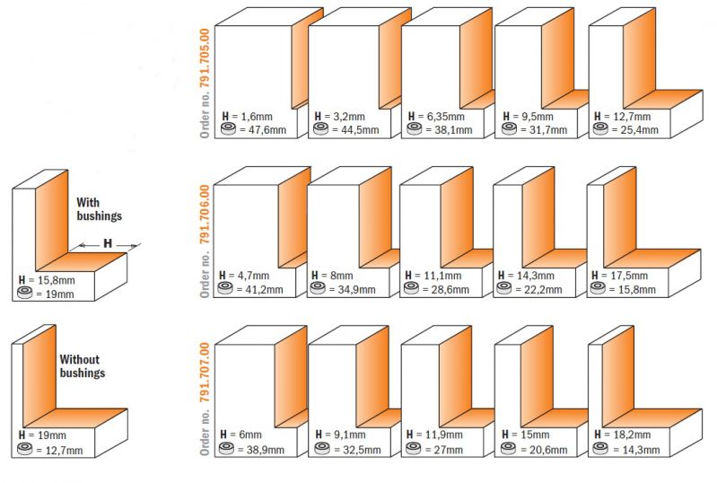 - The ultimate rabbeting sets & the ultimate tool value. These sets include our 835.990.11 bit with 22mm (7/8”) cutting height, plus bearings to cut 17 different rabbets, all in a sturdy molded case. For rabbet sizes over 12,7mm (1/2”) we suggest cutting in several shallow passes to achieve the desired cutting depth.