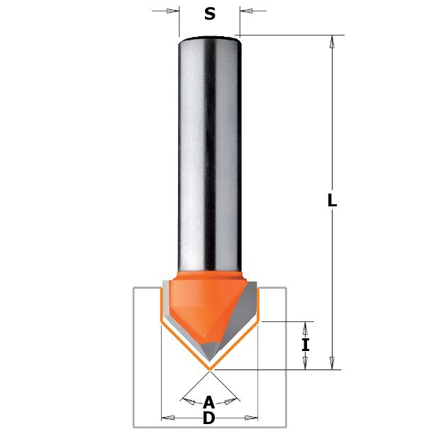 CMT V-Grooving Router Bits (90°) - 19 dia x 16mm cut x 1/2 shank