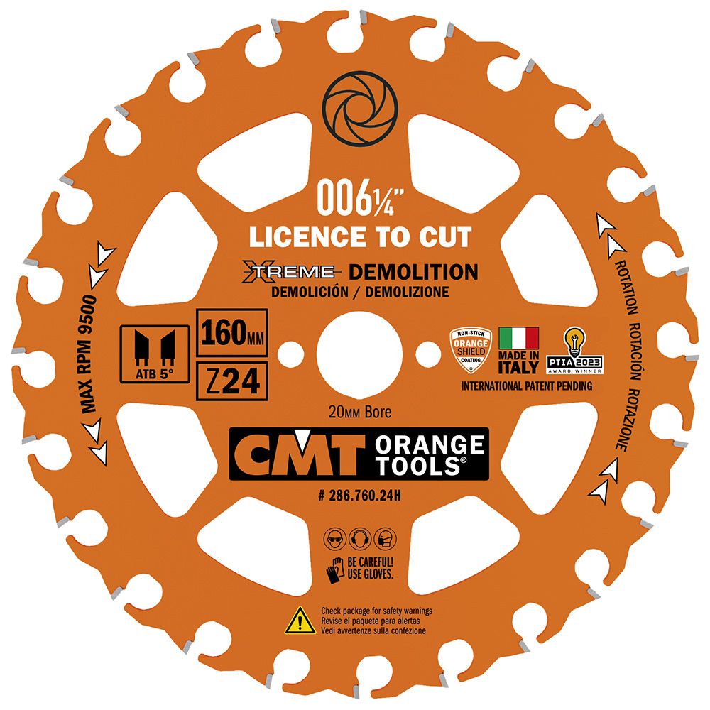 CMT XTreme Demolition Saw Blade - 160mm dia x 2.3 kerf x 20 bore Z24 5°ATB