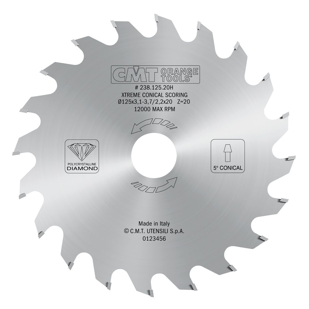 CMT XTreme Diamond Conical Scoring Blade 120mm dia x 3.1-3.7 kerf x 20 bore Z20 CON