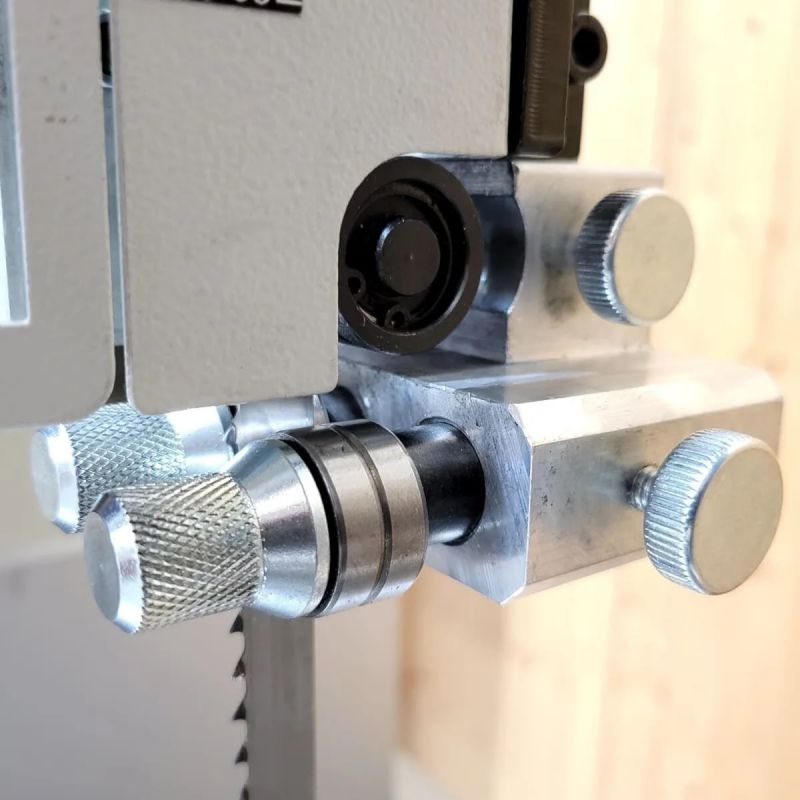 - The blade guide system has 5 sealed bearings at the top and 5 underneath the table. Each side of the blade there are 2 bearings allowing for greater support when using a 20mm blade. The rear bearing has a groove in the centre which allows a 3mm blade to be used for Scroll work. All of the bearings have tool free adjustment making the Cobra bandsaw one of the easiest bandsaws on the market to set up.