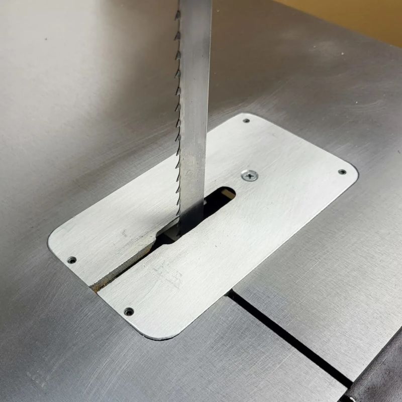 - The micro polished cast iron table is mounted onto an over sized double cast iron trunnion with two locking points that ensure there is a solid surface to work from. The table tilts to 45° with a positive stop at 90°. A flip plate allows reverse tilt up to 7° when required. In the centre of the table is an aluminium throat plate with 4 adjusting screws to ensure a perfect flush fit.