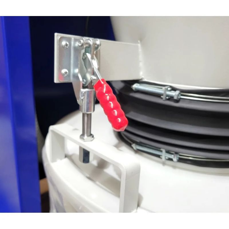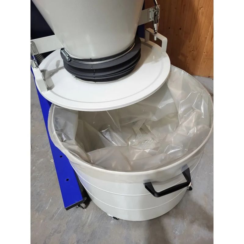- Emptying the drum is a very simple operation. 2 toggle handles raise the drum lid. The drum is on castors, and can be rolled forward to access the plastic collection bag. Replace the bag, roll the drum back into place and close the lid. The C400RA has a twin hose negative pressure system which keeps the empty collection bag in place and prevents it being sucked up. No need for a messy drum insert inside the bag as required on many other cyclones.
