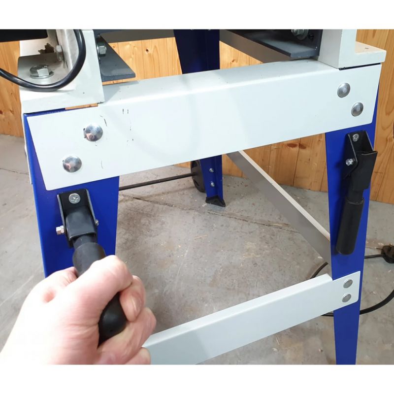 • The height of the sanding drum is adjusted using a large hand wheel and the position read off the scale, which is graduated in both millimetres and inches.