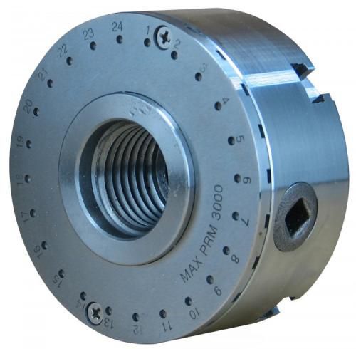 • The indexing plate fits onto the back of the Nexus3 chuck, replacing the blank plate supplied as standard. It has 24 numbered positions set out at 15 degree intervals. Each position has a pin hole in the back of the plate and a slot in the side of the plate. An indexing attachment can then be used to add decorative features to a spindle or bowl at set intervals.