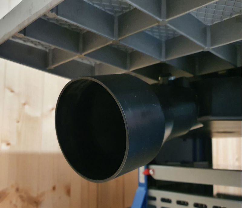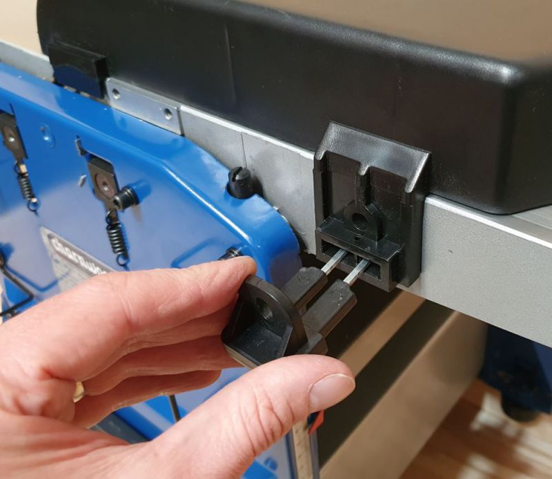 The redesigned dust hood now has a quick action clamp to allow faster removal when changing between Planing and thicknessing modes. The hood fits onto the thicknessing bed during planing operations and is then moved over the top when thicknessing. As a safety feature a location sensor detects that the dust hood has been correctly fitted before allowing the motor to run.
