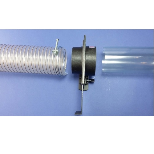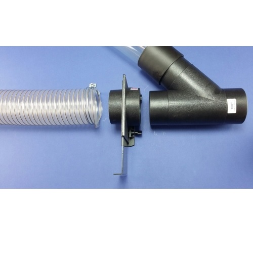• The blast gate has a 100mm quick connection on one side so it can be pressed onto a 100mm outlet or Y-Branch, T-Branch etc without the use of a sleeve. Our 100mm hose can be connected directly onto the other side and secured with a hose clamp, 100HC.