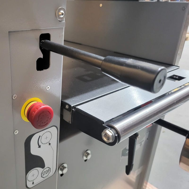 - Setting the thicknessing depth is done by rotating the cast iron hand wheel (1 rotation = 2mm) and reading from the measuring scale or for more precise control the mechanical digital display, accurate to 1/10th of a millimetre. A position lock is fitted which prevents any movement of the bed during the cut.