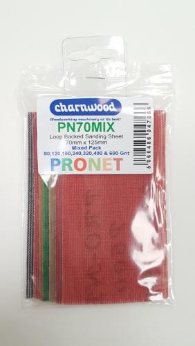 Charnwood Pronet PN70MIX - 70 x 125mm Pronet Hook and Loop Sanding Sheets - mixed grit pack of 7