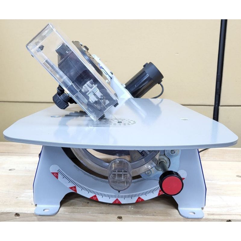 - This enables the user precise control over the work, which is placed on the large horizontal fixed steel table. Both hands are free to guide the work piece, while simultaneously controlling the blade speed via their foot operated throttle pedal switch. This is the safest practice for accurate cutting.