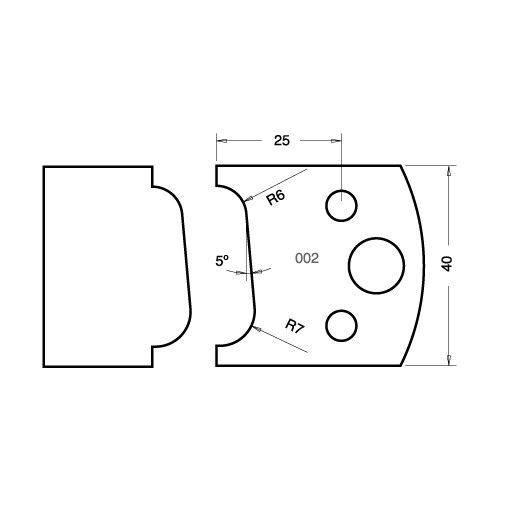 - Spindle Moulder cutterblock with limiters. This steel block is compatible with all 40mm Euro pattern cutters. The set includes straight knives plus 6 popular profiles and is supplied in a foam lined aluminium storage case.