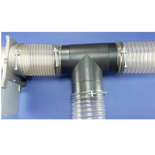 - A 125mm diameter hose can be attached to any end of the T-piece and secured with a hose clamp.