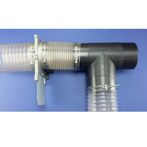 - When using two branches it is recommended to close off any branches not in use, so that a higher airflow is achieved down the active branch. Shut off gates (125G) can be attached to the T-piece using a piece of 125flex hose.