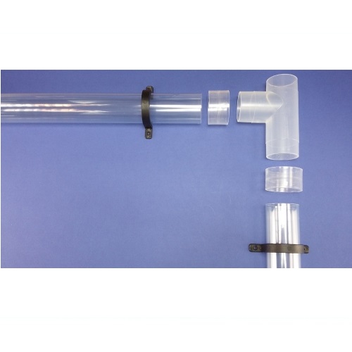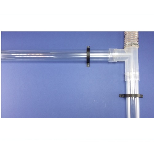 - A 65mm diameter hose can be attached to any end of the T-piece and secured with a hose clamp.