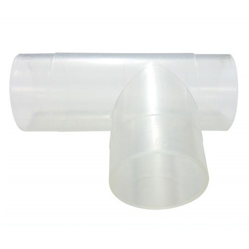 - Clear PVC T shaped splitter with 3 x 63mm (2.5") ends. Used To split a single hose line into two branches when creating multiple connections.