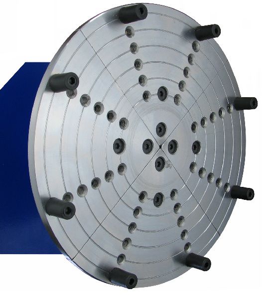 • The jaws are 210mm diameter when closed, 268mm diameter when opened. The work piece is held in place by 8 rubber coated fixings which can be fitted in 6 different positions on the jaws depending on the diameter required.