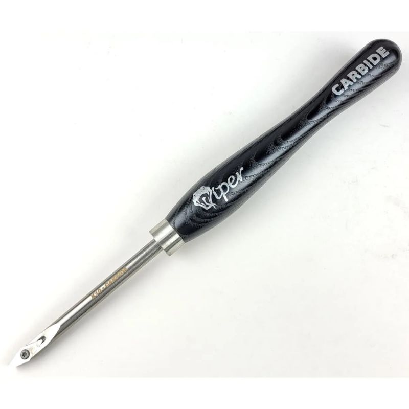 - The handles are 220mm long and made from Ash. A distinctive stainless steel ferrule connects a 10mm diameter round shaft which is laser etched. On the end is mounted a Tungsten Carbide (TC) cutting tip. The 3 razor sharp cutting tips have different shapes to achieve different types of cut. Carbide cutters are presented to the timber at 90 degrees and cut with a scraping action. This is a much simpler skill to learn when compared to using a traditional bowl gouge, which is what makes it especially suitable for beginners.