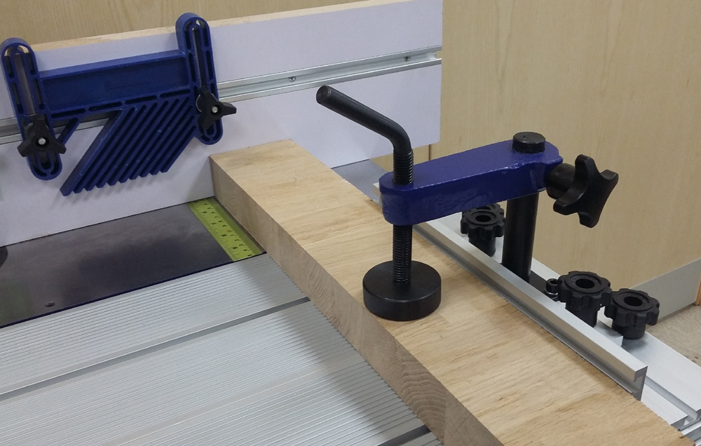- The main fence used for edge moulding and trenching operations has independently adjustable infeed and outfeed fences, ideal for planing edges, and two spring clamps to hold the work piece down against the table.