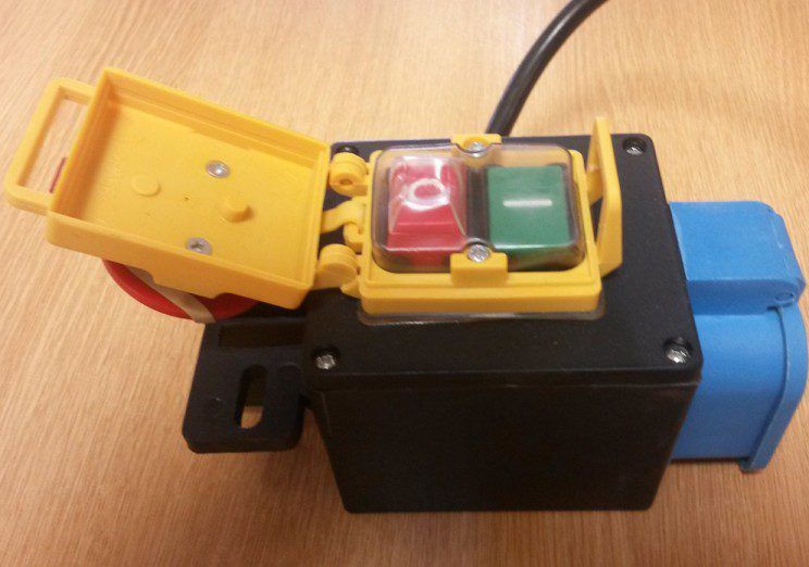 Supplied with integral socket, separate start and stop buttons, 2m cable, plug and fixing bolts. For use with any power tools up to 2200watts, 240volts.