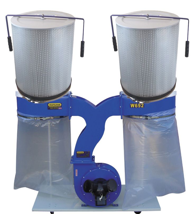This allows the extractor to be used for operations which produce very fine dust such as sanding and cutting MDF. The particle size of fine woodworking dust is generally between 2 and 3 microns. Research shows 99% of wood dust, produced by machining softwood, hardwood or MDF, is within that range. The extractor can still be used with all the normal workshop machines which produce dust and chips, such as: bandsaws, table saws, planers, thicknessers and spindle moulders.