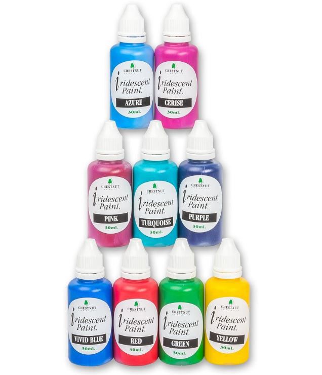 - Iridescent Paints give a change in hue, a slight colour shift when viewed from different angles and are especially effective on irregularly shaped items.