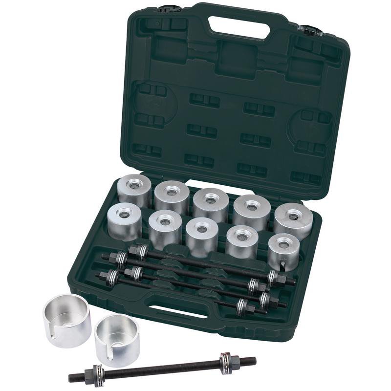 - Expert Quality, for the accurate and controlled insertion/removal of normal bearings, silent bearings, hydraulic bearings, rubber bearings, bearing bushes, shaft seals etc. Comprises 22 adaptor rings and five fine thread puller bars with thrust bearing hex. nut ends. Packed in blow mould carrying case and display sleeve.