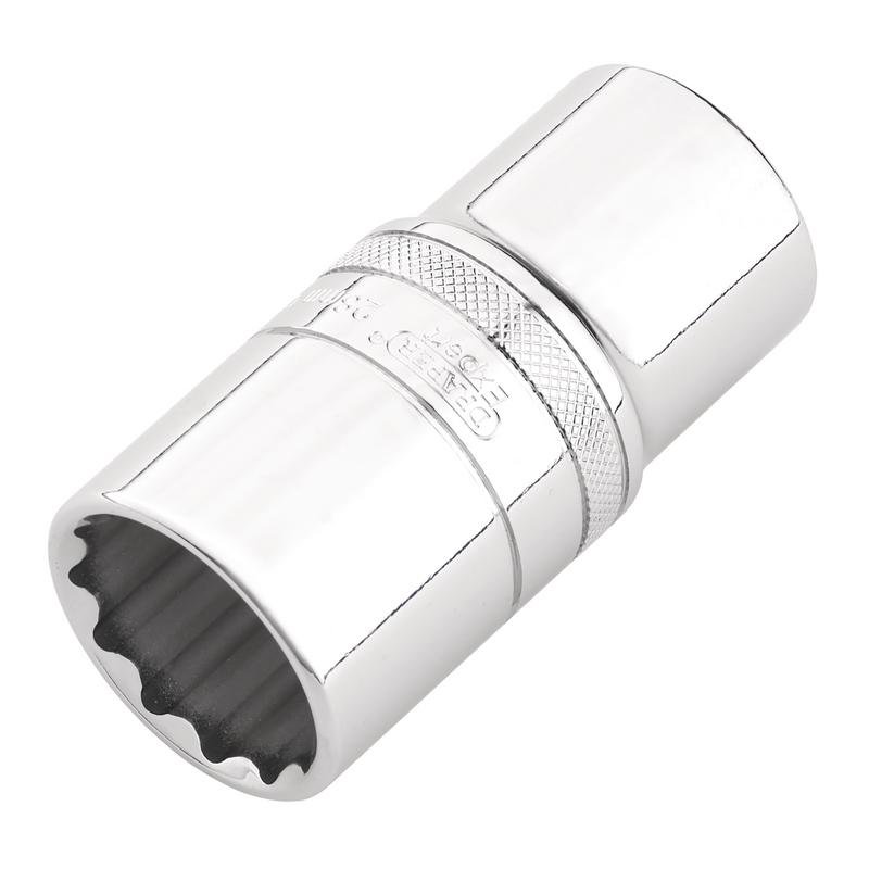 • This Draper Expert Hi-TORQ® 12-point deep socket is made from hardened chrome vanadium steel and it has a chrome plated mirror finish for corrosion protection. Each socket includes a knurled ring for enhanced grip.