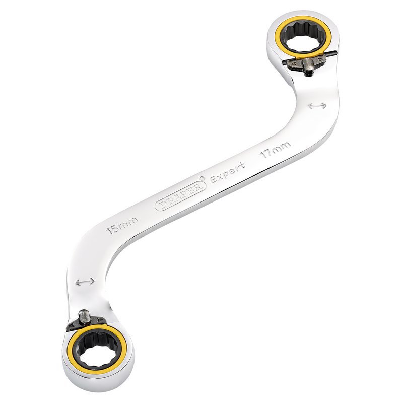 Draper Expert HI-TORQ Double Ring Ratchet S-Shape Spanner, 15 x 17mm