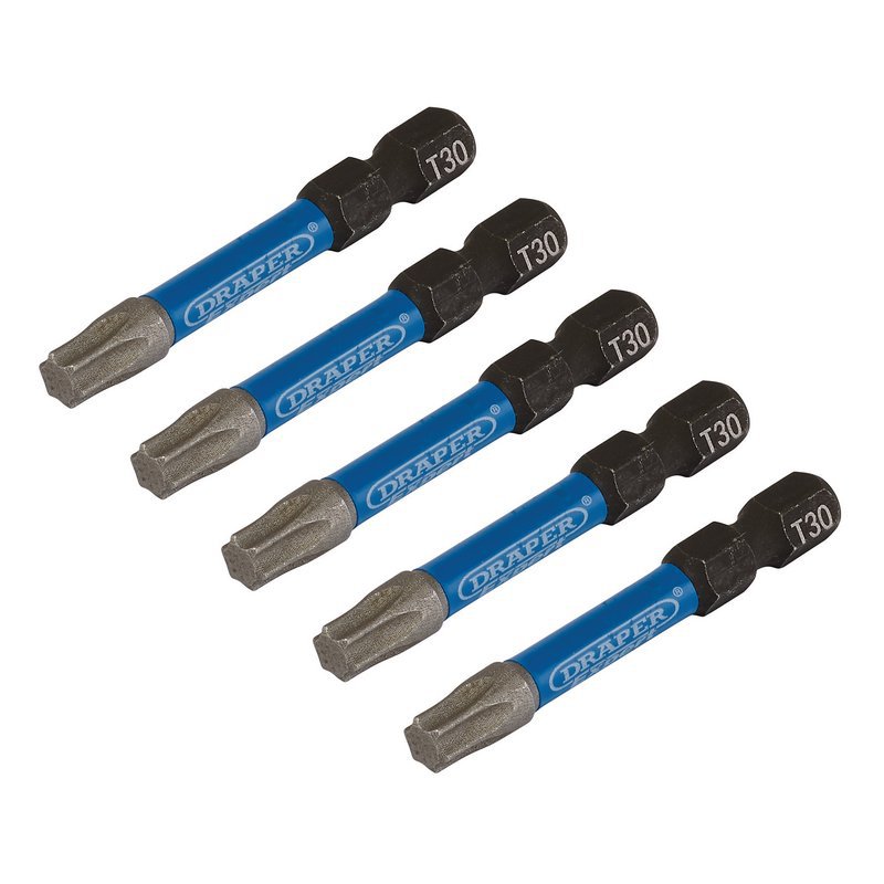 Draper Expert TX-STAR Torx Impact Screwdriver Bits, T30 x 50mm, 1/4" Hex (Pack of 5)