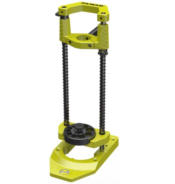- With adjustable plate for the drill bush for exact guidance of the drill bit.