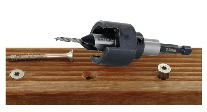 - This set is particularly well suited for terrace construction. It makes it easy to drill screwholes and to countersink them properly and accurate in the terrace boards. The depth stop is rotatably mounted and stops when it touches the workpiece. This prevents the depth stop from leaving marks on the terrace boards.